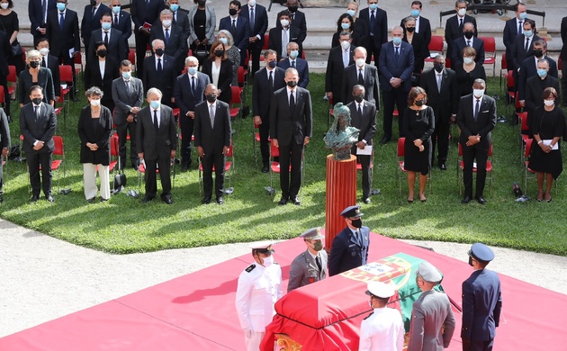 Tras su llegada a Lisboa, Don Felipe se trasladó al Monasterio de los Jerónimos de Santa María de Belém para asistir al funeral, donde mantuvo encuentros con los mandatarios y autoridades asistentes, entre ellos el secretario general de las Naciones Unidas, António Guterres.