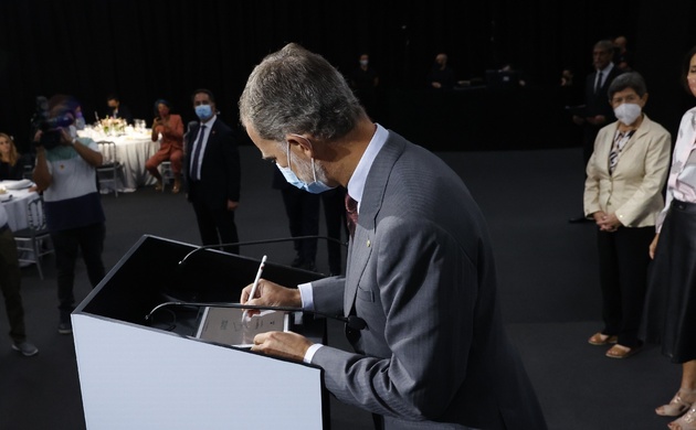 A continuación, Don Felipe accedió al escenario, y firmó sobre un dispositivo digital declarando inaugurada esta edición. Tras el almuerzo, Su Majestad el Rey mantuvo un encuentro con los asistentes.