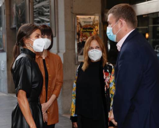 En el vestíbulo, Doña Letizia fue saludada por el Director del British Council en España, Mark Howard; la ministra consejera de la Embajada del Reino Unido de la Gran Bretaña e Irlanda del Norte en España, Sarah Cowley y el director del Círculo de Bellas Artes, Valerio Rocco.