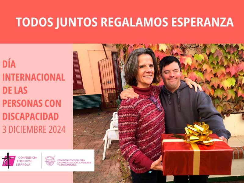 El 3 de diciembre se celebra el Día Internacional de las Personas con discapacidad. La Conferencia Episcopal Española, desde el área de la discapacidad, se une a esta Jornada y ofrece diversos recursos con el fin de animar la evangelización de este sector pastoral y avanzar en su inclusión en la sociedad y en la Iglesia. En esta ocasión se ha elegido como lema: «Todos juntos regalamos esperanza».