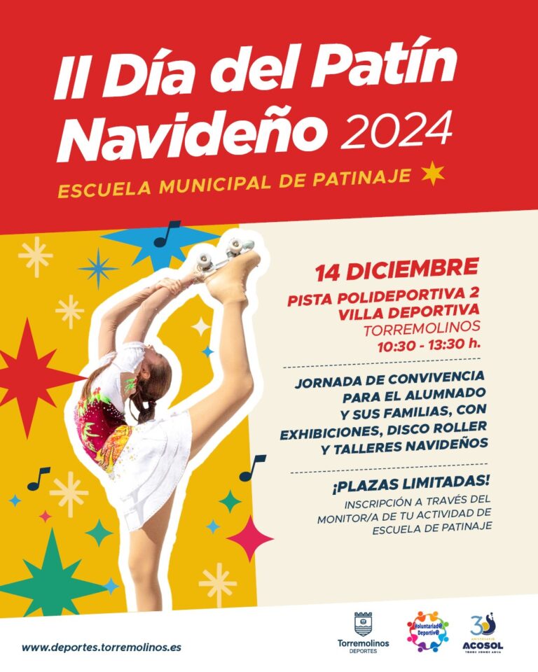 La jornada, que tendrá la colaboración del Club Patinaje Torremolinos, se llevará a cabo en la pista de patinaje en horario de 10:30 a 13:30 horas y contará con exhibiciones, dico roller y talleres navideños.