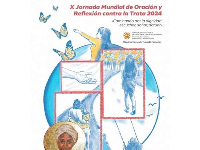 «Caminando por la dignidad: escuchar, soñar, actuar» es el lema de la X Jornada Mundial de Oración y reflexión contra la Trata de Personas 2024, que se celebra el 8 de febrero, coincidiendo con el día en que la Iglesia celebra la memoria litúrgica de Santa Josefina Bakhita. El papa Francisco propuso por primera vez hace diez años la celebración de esta Jornada.