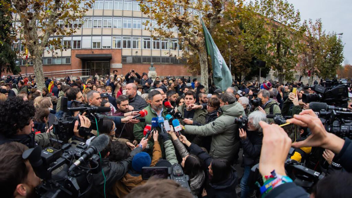 Acompañado por el vicepresidente de la Junta de Castilla y León, Juan G. Gallardo, Santiago Abascal se ha referido a las palabras pronunciadas este jueves por el presidente del Partido Popular, Alberto Núñez Feijóo y por la presidenta de la Comunidad de Madrid, Isabel Díaz Ayuso, rompiendo con VOX.