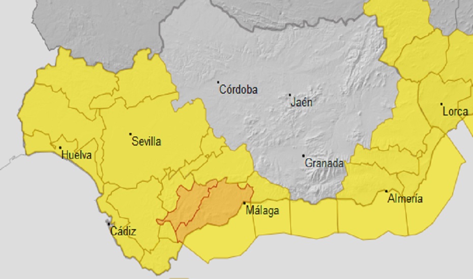 El nivel naranja comenzará a las 00.00 horas y estará vigente en las comarcas malagueñas de Ronda, Sol y Guadalhorce, al menos durante toda la jornada del miércoles.