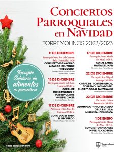 El 22 de diciembre tendrán lugar dos conciertos, uno en la Parroquia Cristo Resucitado a las 18:30 horas, a cargo del alumnado y profesorado de la Escuela Municipal de Música y otro una hora más tarde en la Parroquia San Miguel a cargo de la Coral de Torremolinos, Torremolinos Gospel Choir y Coral Tantanakui, bajo la dirección de Rosana Dalmaso.