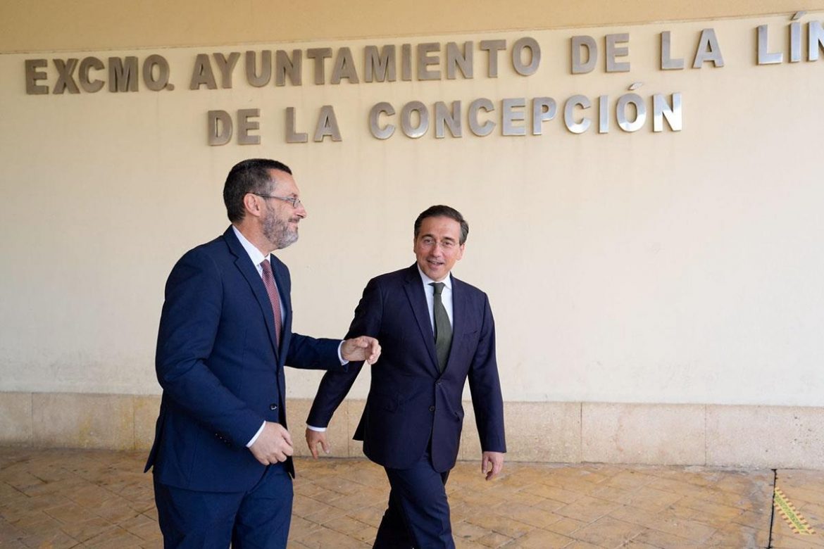 El ministro de Asuntos Exteriores, Unión Europea y Cooperación, José Manuel Albares, ha viajado al Campo de Gibraltar, donde se ha reunido con los alcaldes de La Línea y de San Roque y ha visitado la Verja y las obras que se están realizando de cara a la inminente aplicación del Acuerdo entre la Unión Europea y Reino Unido con respecto a Gibraltar, a partir del 15 de julio