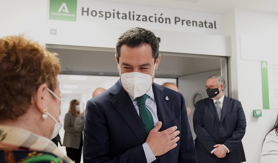 El presidente andaluz ha visitado hoy las nuevas instalaciones del Hospital Materno Infantil del Hospital Universitario Virgen de las Nieves en Granada donde se ha llevado a cabo una ambiciosa obra de modernización, adaptación y ampliación de los servicios, al mismo tiempo que ha puesto en valor la inversión de más de 9 millones de euros que se ha destinado en estos dos años a este centro de referencia y que van a contribuir y a hacer realidad una transformación sin precedentes.