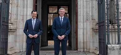 El presidente de la Junta de Andalucía, Juanma Moreno, y el presidente de la Xunta de Galicia, Alfonso Rueda, han firmado en el Palacio de San Telmo una Declaración de Intenciones institucional que se sustanciará más adelante en la firma de un importante Convenio de Colaboración en materia educativa entre la Consejería de Desarrollo Educativo y FP y la Agencia Digital de Andalucía, por parte de la Junta, y la Consellería de Educación, Ciencia, Universidades e FP por parte de la Xunta.