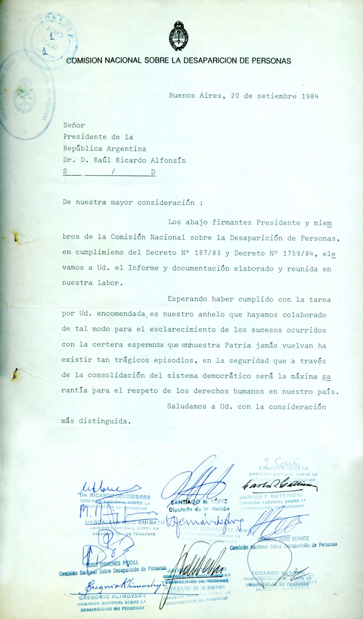 Este informe ha recopilado los nombres de 8.961 personas desaparecidas entre 1976 y 1983, y la existencia de 380 centros clandestinos de detención para los miembros de la guerrilla.