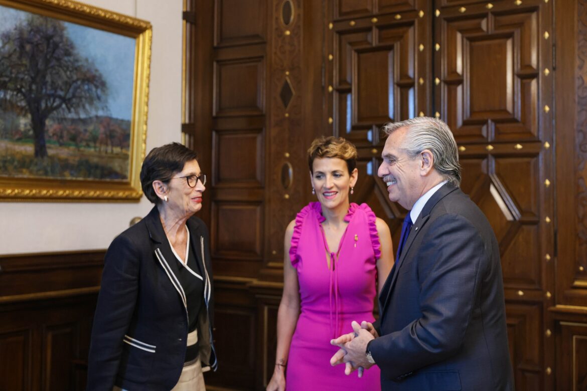 El presidente Alberto Fernández mantuvo ayer un encuentro en Casa Rosada con la presidenta del Gobierno de Navarra, María Victoria Chivite Navascués, con quien dialogó sobre la importancia de construir nuevos lazos culturales y de desarrollo, tanto económico como tecnológico.