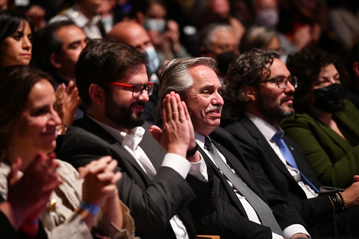 El presidente Alberto Fernández y su par chileno, Gabriel Boric, compartieron un encuentro musical en el Centro Cultural Kirchner. La propuesta reunió a artistas de diferentes generaciones y corrientes musicales de ambos países que se agruparon en un ensamble orquestal, con arreglos originales compuestos para la ocasión.