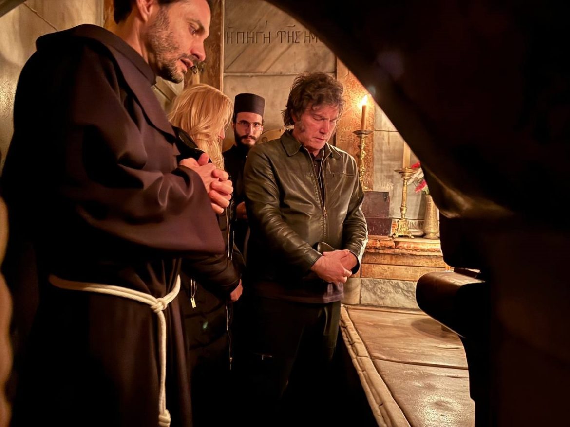 En el tercer día de su viaje a Israel, el presidente Javier Milei visitó la Iglesia del Santo Sepulcro, emplazada en la Ciudad Vieja de Jerusalén.