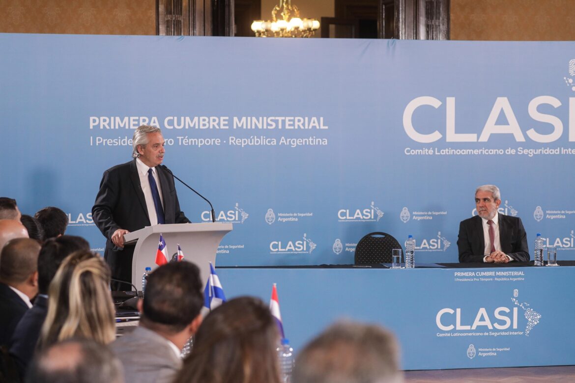 El presidente Alberto Fernández encabezó este mediodía el cierre de la 1° Cumbre Ministerial del Comité Latinoamericano de Seguridad Interior (CLASI), que tiene como objetivo definir prioridades en el intercambio de información criminal y establecer planes de acción operativos para alcanzar resultados más eficaces en la materia, en el Centro Cultural Kirchner (CCK).