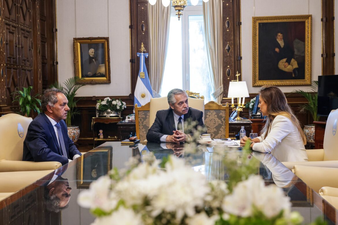 El presidente Alberto Fernández recibió este mediodía en Casa Rosada a la secretaria de Energía, Flavia Royon, y al embajador argentino en Brasil, Daniel Scioli, quienes suscribieron por Argentina la actualización del Memorándum de Intercambio de Energía hasta 2025 con el viceministro de Minas y Energía brasilero, Hailton Madureira de Almeida, para regular el abastecimiento de energía eléctrica y gas entre ambos países.