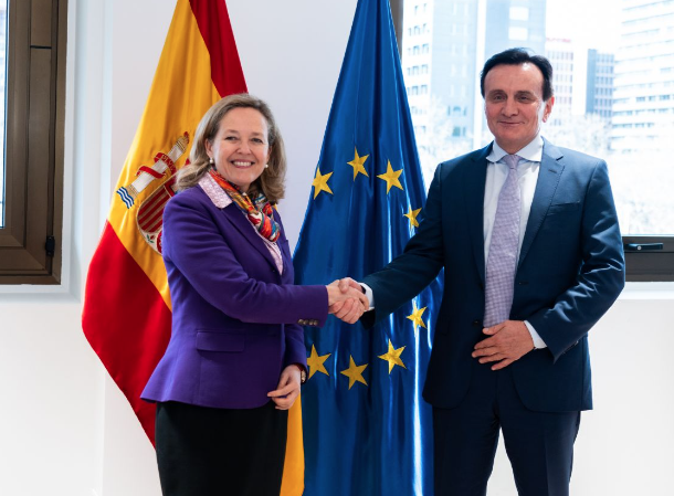 La vicepresidenta primera y ministra de Asuntos Económicos y Transformación Digital, Nadia Calviño, ha mantenido hoy una reunión con el presidente mundial de AstraZeneca, Pascal Soriot, en la sede del Ministerio, a la que también ha asistido el presidente de AstraZeneca España, Rick R. Suárez.