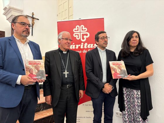 Con motivo de la celebración del Corpus Christi, Día de la Caridad, el próximo 19 de junio, Cáritas Diocesana de Sevilla ha presentado la memoria institucional que da cuenta de la actividad desarrollada por la organización de la Iglesia, durante 2024. Y lo ha hecho bajo el lema que encabeza su campaña institucional ‘Mientras haya personas, hay esperanza’, El arzobispo de Sevilla, monseñor José Ángel Saiz Meneses; el director de Cáritas Diocesana, Miguel Carbajo; y el vicario episcopal, Salvador Diánez; han sido los encargados de presentar esta memoria anual. Victoria Martín, secretaria general de Cáritas Diocesana de Sevilla también ha estado presente en el acto.