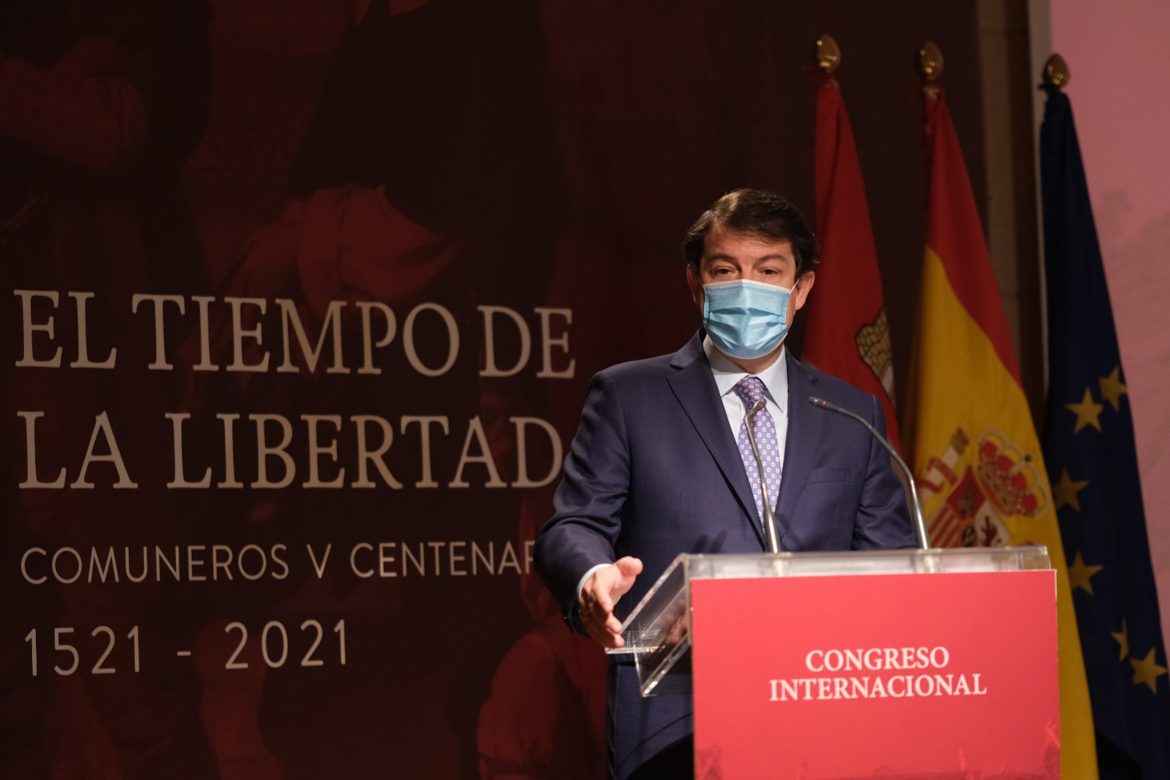 El presidente de la Junta de Castilla y León, Alfonso Fernández Mañueco, intervino ayer en la inauguración del Congreso “El tiempo de la libertad: Comuneros V Centenario”, celebrado en la sede del Parlamento autonómico, donde ha destacado la “plena vigencia” de los ideales que motivaron el movimiento comunero.