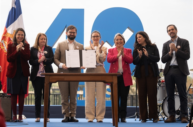 El Presidente de la República, Gabriel Boric Font, promulgó, desde el Parque de La Familia en Quinta Normal, la ley que reduce la jornada laboral de 45 a 40 horas por semana, despachada por el Congreso Nacional el martes recién pasado.