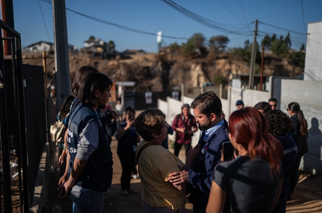 Chile. Presidente de la República, Gabriel Boric Font, se reúne con familias afectadas por los incendios en Quilpué