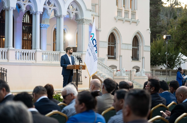 La tarde de este miércoles 26 de marzo, S.E. el Presidente de la República, Gabriel Boric Font, asistió a la ceremonia inaugural de la Asamblea Nacional de la Asociación Chilena de Municipalidades (AChM) junto al ministro del Interior y Seguridad Pública, Álvaro Elizalde; la subsecretaria de Desarrollo Regional y Administrativo, Francisca Perales; la subsecretaria de Prevención del Delito, Carolina Leitao; el gobernador regional de Valparaíso, Rodrigo Mundaca; la alcaldesa de Quinta Normal y presidenta de la AChM, Karina Delfino, y la alcaldesa de Viña del Mar, Macarena Ripamonti.