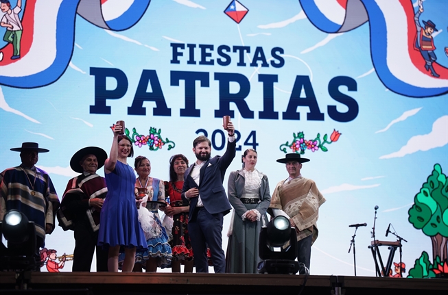 La noche de este lunes, el Presidente de la República, Gabriel Boric Font, encabezó la tradicional inauguración de las Fondas de Santiago 2024 en el Parque O’Higgins, acompañado de la alcaldesa de Santiago, Irací Hassler; a la ministra del Interior y Seguridad Pública, Carolina Tohá; al ministro de Hacienda Mario Marcel; al ministro Secretario General de la Presidencia, Álvaro Elizalde; a la ministra Secretaria General de Gobierno, Camila Vallejo; a la ministra de Desarrollo Social y Familia, Javiera Toro; a la ministra del Trabajo y Previsión Social, Jeannette Jara; al ministro de Agricultura, Esteban Valenzuela; a la ministra de Minería, Aurora Williams; a la ministra de Ciencia, Tecnología, Conocimiento e Innovación, Aisén Etcheverry; el gobernador de la Región Metropolitana, Claudio Orrego; la Presidenta de la Cámara de Diputados y Diputadas, Karol Cariola; además de vecinas y vecinos de Santiago.