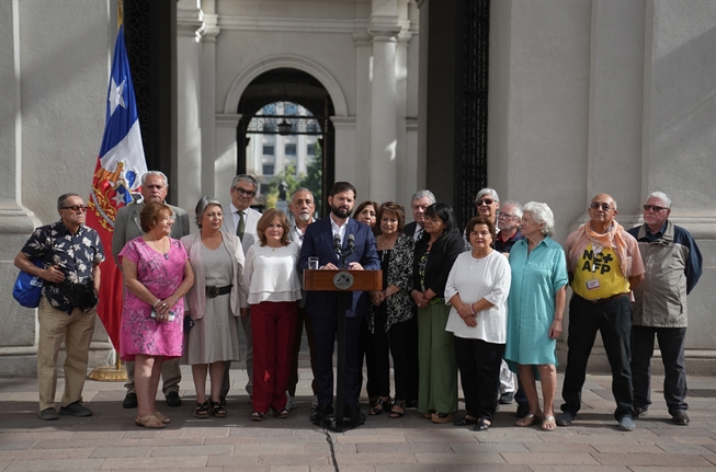 El Mandatario, acompañado de la ministra Jeannette Jara, del ministro Mario Marcel y del subsecretario Claudio Reyes, sostuvo un desayuno en el Palacio de La Moneda junto a pensionadas y pensionados luego de que este miércoles se aprobara la reforma de pensiones en el Congreso Nacional.
