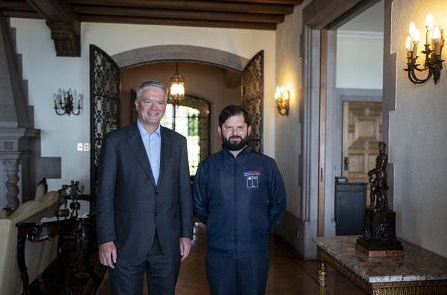 Este miércoles 15 de enero en el Palacio Presidencial de Cerro Castillo, el Presidente de la República, Gabriel Boric Font, recibió en audiencia al secretario general de la Organización para la Cooperación y el Desarrollo Económico (OCDE), Mathias Cormann. En el encuentro el Mandatario abordó junto al funcionario australiano temas relacionados a los desafíos económicos actuales y al compromiso de Chile de reforzar una economía más inclusiva, digitalizada y sostenible. También el Jefe de Estado reafirmó el liderazgo del país en materias como la transición verde y la inteligencia artificial.