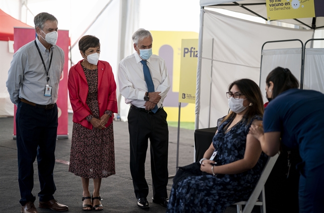“Estamos anticipándonos y conversando con los laboratorios para que, de ser necesario, los chilenos y chilenas podamos contar con todas las vacunas que sean útiles, eficaces y necesarias”, destacó el Mandatario junto a la ministra de Salud (s), María Teresa Valenzuela y el Alcalde de Lo Barnechea, Cristóbal Lira, durante una visita al Centro de Vacunación El Rodeo.