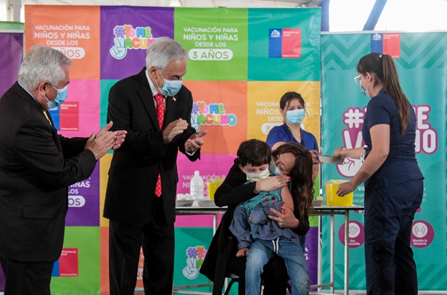 El Presidente de la República, Sebastián Piñera, dio inicio la mañana de este lunes al proceso de vacunación contra el Covid-19 en niños y niñas de entre 3 a 5 años de edad en Chile.