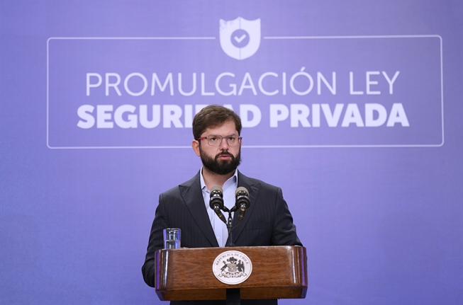 S.E. el Presidente de la República, Gabriel Boric Font, junto a la Ministra del Interior y Seguridad Pública, Carolina Tohá; el Ministro de Hacienda, Mario Marcel; el Ministro Secretario General de la Presidencia, Álvaro Elizalde; la Ministra del Trabajo y Previsión Social, Jeanette Jara; la Ministra de Defensa, Maya Fernández; el Ministro de Justicia y Derechos Humanos, Luis Cordero; y el Ministro de Transportes y Telecomunicaciones Juan Carlos Muñoz, además de parlamentarios y parlamentarias, encabezó la promulgación de la Nueva Ley de Seguridad Privada.
