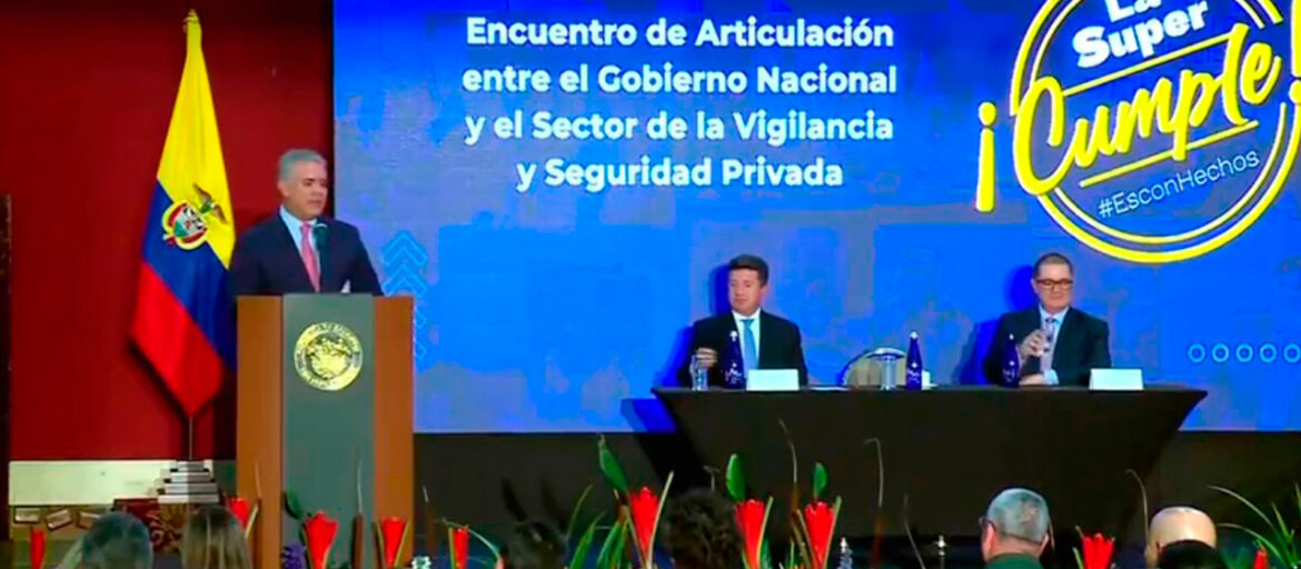 Con estas palabras, el Presidente Iván Duque reconoció este viernes la labor que cumple la seguridad y la vigilancia privada en el país, durante el Encuentro de Articulación entre el Gobierno Nacional y el sector, celebrado en el Salón Rojo del Hotel Tequendama.