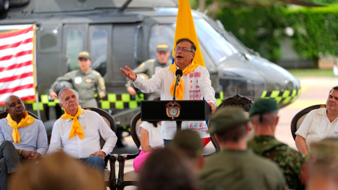 “Nosotros les agradecemos tanto la entrega del material. No es poco, doce helicópteros de alta tecnología, y su decisión política, que coincide en este momento con nosotros”, concluyó en su intervención el Presidente Petro.