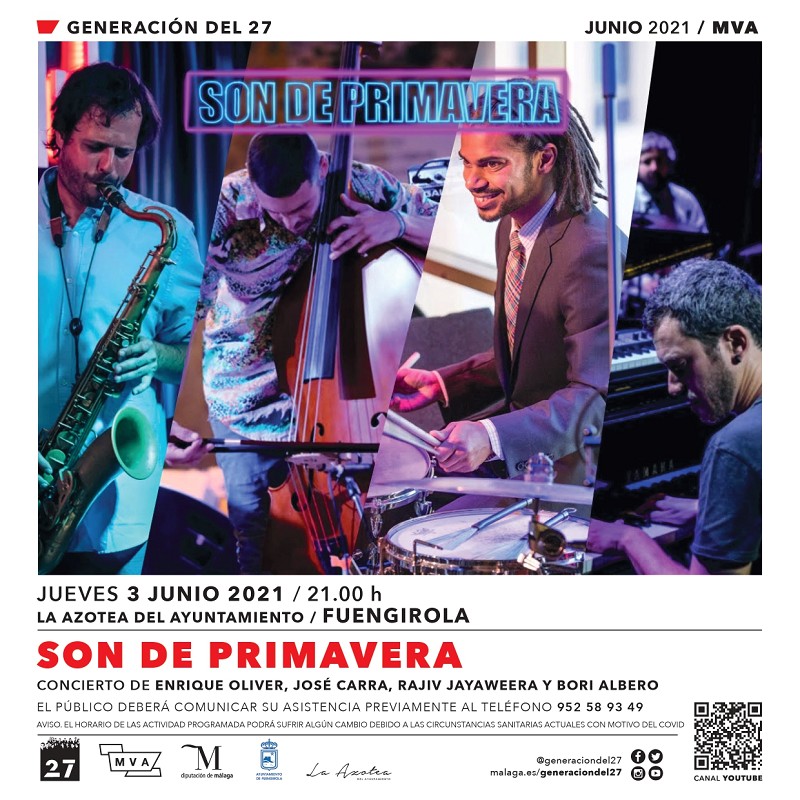 Continúa en Fuengirola el ciclo de conciertos al aire libre Son de Primavera que organiza el Centro del 27 de la Diputación de Málaga. Mañana jueves, 3 de junio, la azotea del ayuntamiento se convertirá en el escenario improvisado donde la banda de jazz Enrique Oliver Quartet -formada por José Carra al piano, Boni Albero al contrabajo y Rajiv Jayaweera a la batería- presentará su segundo trabajo discográfico, ‘Incerteza’. Será a las 21.00 horas. Las invitaciones se pueden reservar en el teléfono 952 58 93 49.