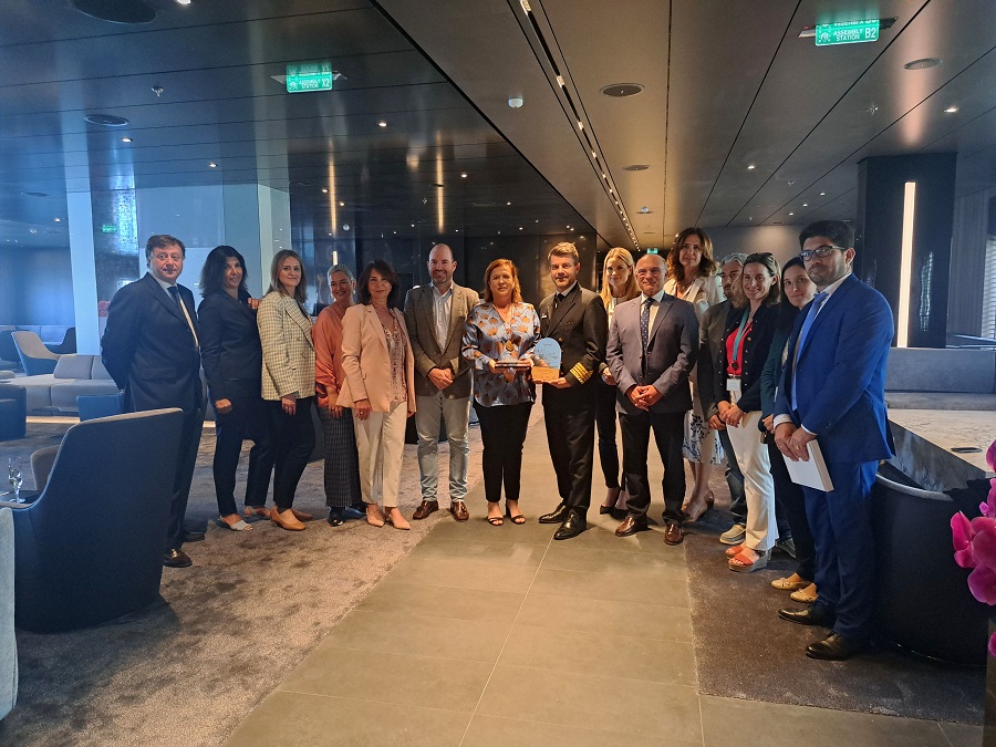 La comitiva estuvo conformada por el presidente de la Autoridad Portuaria, Carlos Rubio; la secretaria General de Turismo de la Junta de Andalucía, Yolanda de Aguilar; el director del Área de Turismo del Ayuntamiento de Málaga, Jonathan Gómez; la promotora de Turismo y Planificación Costa del Sol, Natalia Bóveda; la gerente de Suncruise Andalucía, Esther Molina; la gerente de la Fundación Málagaport, Pilar Fernández-Fígares y la gerente de Málaga Cruise Port, Susana Gutiérrez, acompañados por el consignatario del buque, la empresa Intercruises.