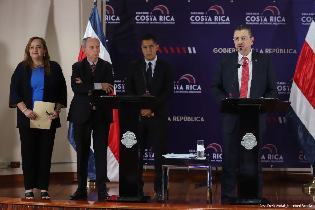 El Presidente de la República, Rodrigo Chaves Robles en compañía del ministro de Hacienda, Nogui Acosta Jaén y la viceministra de Gobernación y Policía, Marlen Luna, firmaron el reglamento a la Ley N°9996 para la atracción de inversionistas, residentes y residentes pensionados.