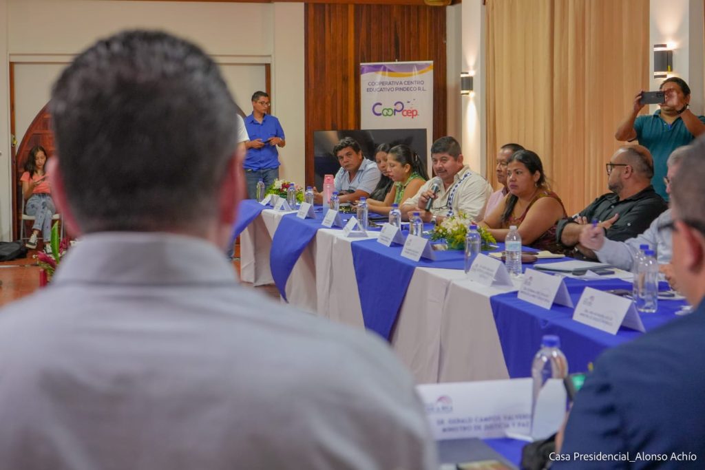 El Presidente de la República, Rodrigo Chaves Robles y la Mesa Técnica de Asuntos Indígenas, sostuvieron dos reuniones, una con líderes y lideresas indígenas y otra con representantes de diferentes organizaciones de la región, donde se hizo un llamado a un acuerdo de paz y cese a la violencia en el proceso de recuperación de tierras, esto mientras el Gobierno avanza con acciones contundentes para la recuperación de territorios indígenas por los medios legales con el fin de solventar las necesidades de todos los habitantes.