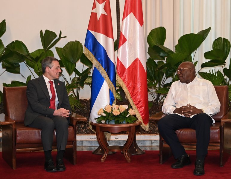 Tras agradecer la calidez del recibimiento, el Jefe del Departamento Federal de Asuntos Exteriores de la Confederación Suiza comentó que esta visita —la primera que realiza un Consejero Federal suizo a Cuba— le ha permitido apreciar la belleza de la población cubana, así como del arte, de la geografía y de la arquitectura, y  a su vez también las dificultades que el país está atravesando.