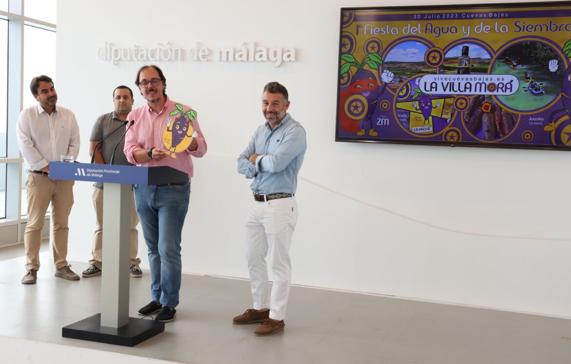 El vicepresidente ha estado acompañado por el concejal de Cultura de Cuevas Bajas, Juan José Lara, y por los responsables de la empresa Capicúa, durante la presentación de este evento en el que el agua es protagonista, ya que se trata del momento de la siembra.
