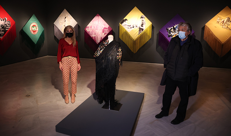 Utilizando el comercio del Galeón de Manila como marco de la exposición, Muntadas desarrolla tres proyectos basados en bienes que originalmente formaban parte de este circuito comercial. ‘Mantón de Manila’ está compuesta por 15 mantones, bordados en Lumban, con imágenes que representan diferentes momentos de la historia y la cultura popular de Filipinas. De origen chino, el mantón de Manila tomó el nombre de la capital filipina que era punto de inicio de las rutas comerciales marítimas durante el Imperio español. El mantón se hizo popular en España en atuendos femeninos de verbenas, ferias, fiestas, sobre todo en Andalucía y se afianzó aún más como uno de los elementos del baile flamenco, sobre todo de la Escuela Sevillana del Flamenco preconizada por Pastora Imperio y luego por Matilde Coral.