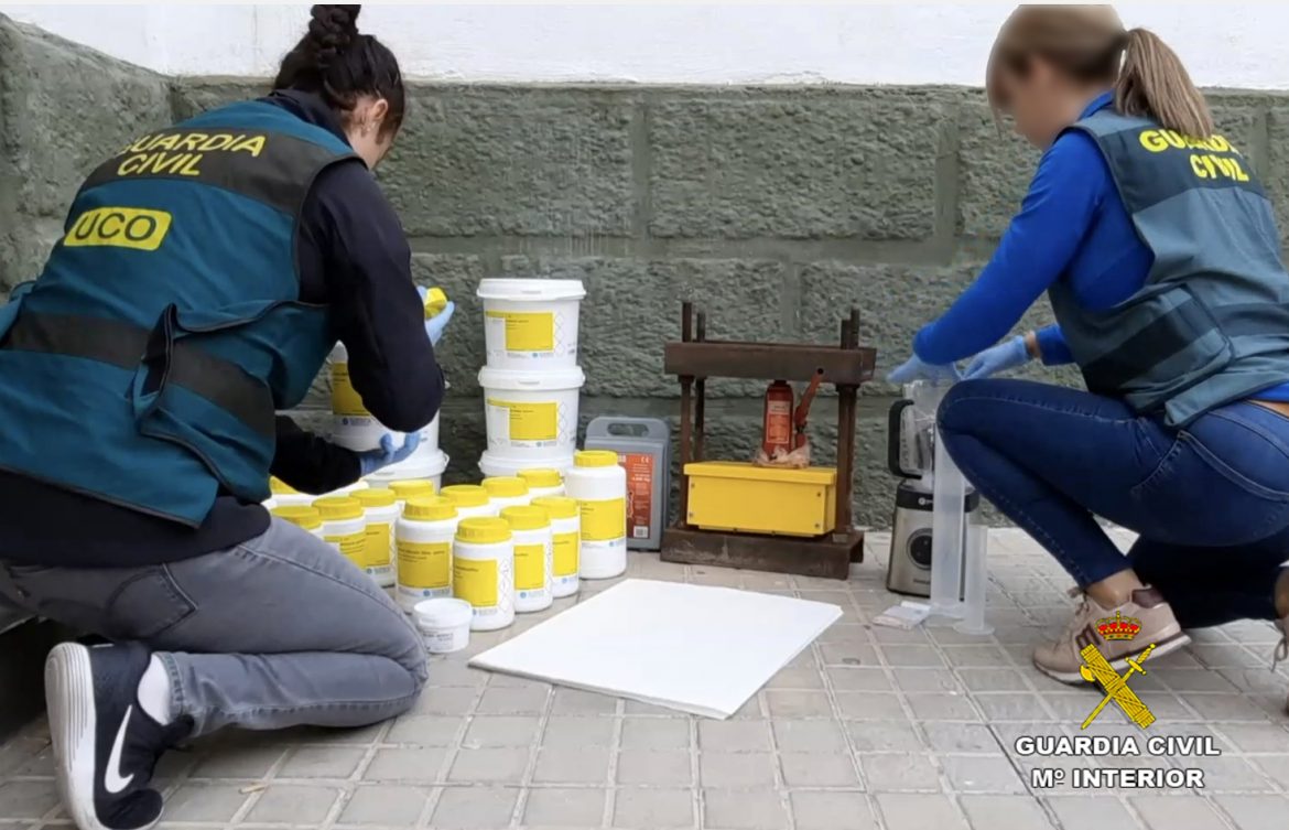 De manera global, la operación se ha saldado con la aprehensión de 1.461 kilogramos de sustancia positiva en cocaína, 74 gramos de cocaína ya procesada, decenas de botes y barriles de sustancias susceptibles de ser empleadas para el corte de cocaína, dos básculas de precisión, una prensa hidráulica, más de 5.000 euros en metálico y un vehículo equipado con un habitáculo oculto, habilitado para el transporte de droga, comúnmente conocido como “caleta”, sumando a todo lo anterior, los dos laboratorios de cocaína desmantelados, así como la total desarticulación de la organización investigada desde su origen.