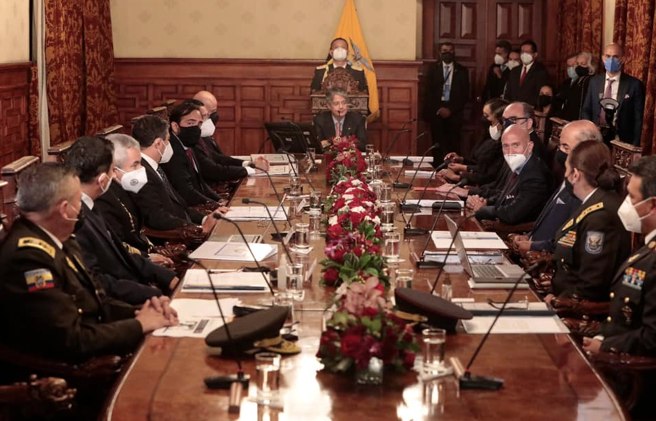 Para finalizar la agenda de su primer día como Presidente de la República, el mandatario Guillermo Lasso lideró la noche de este lunes 24 de Mayo de 2021 el Consejo de Seguridad Pública del Estado (Cosepe), con la finalidad de delinear algunas de las acciones y políticas a emprenderse en su gobierno para precautelar la seguridad del país y de sus ciudadanos.