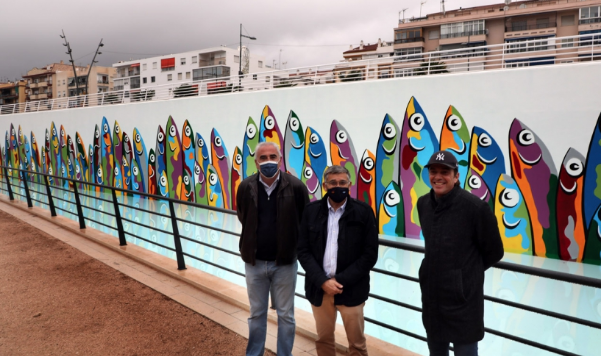 El artista Curro Leyton ha finalizado el mural ‘La Sardiná’, de 420 metros cuadrados de superficie, con el que la Tenencia de Alcaldía de San Pedro Alcántara refuerza el atractivo del Bulevar. El teniente de alcalde, Javier García, ha señalado que “estamos muy satisfechos con la obra, la primera de muchas que queremos realizar para potenciar el arte urbano en nuestra ciudad, además con un símbolo tan de nuestra tierra como las sardinas”. “La intención es continuar impulsando actuaciones de estas características en diferentes puntos con el objetivo de embellecer San Pedro y resaltar su historia”, ha indicado.