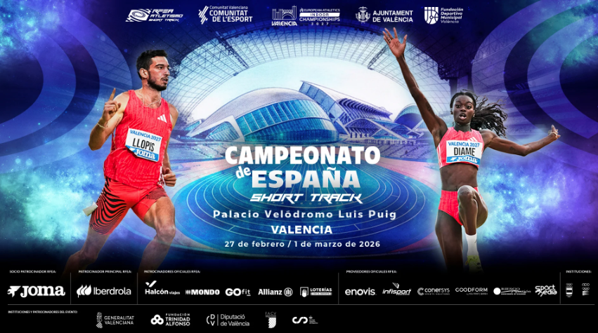 Valencia será escenario este fin de semana de la 62ª edición del Campeonato de España Absoluto Short Track. Del viernes 27 al domingo 1 de marzo, el Palacio Velódromo Luis Puig se convertirá en el epicentro del atletismo nacional bajo techo. El campeonato podrá seguirse en directo a través de Teledeporte y RTVE Play, además de íntegramente los concursos en el canal de YouTube RFEATV (multistreaming).
