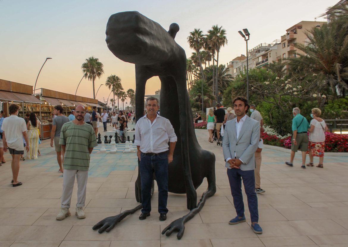 El Ayuntamiento de Estepona ha incorporado al patrimonio de la ciudad la obra escultórica ‘Perro I’, de Rafa Macarrón, uno de los artistas contemporáneos con mayor proyección del país. Esta escultura, que ha sido donada a la ciudad por Kronos Homes, está realizada en bronce, tiene 2,80 metros de altura y pesa casi una tonelada. Se ha instalado en el tramo del paseo marítimo recién remodelado, donde ayer se llevó a cabo la inauguración por parte del alcalde de Estepona, José María García Urbano, el CEO de Kronos, Saïd Hejal y el artista autor, Rafa Macarrón.