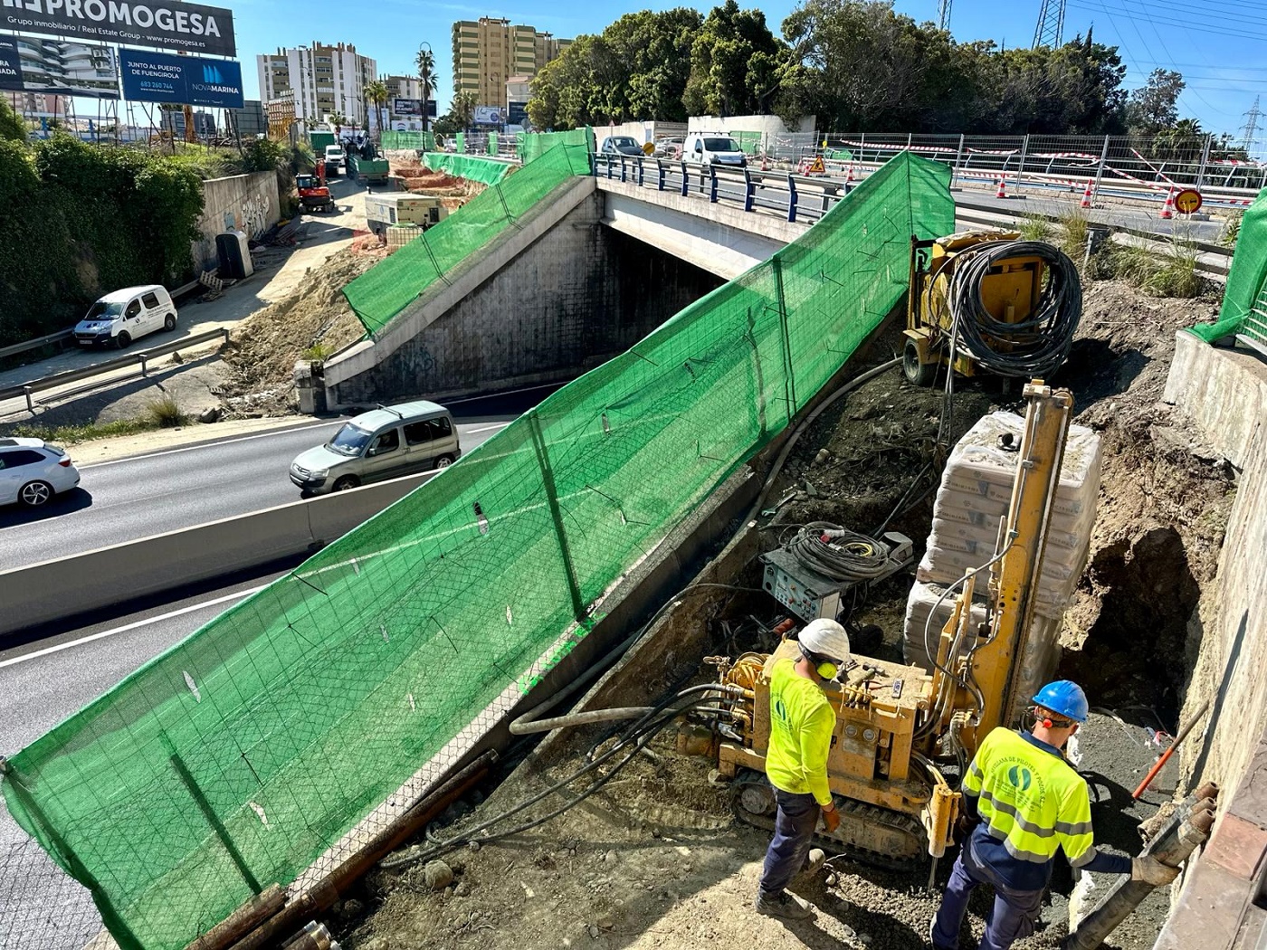 Las obras avanzan con la preparación de los anclajes de ambas plataformas, que discurrirán paralelas a la actual vial que conduce a la carretera de Mijas