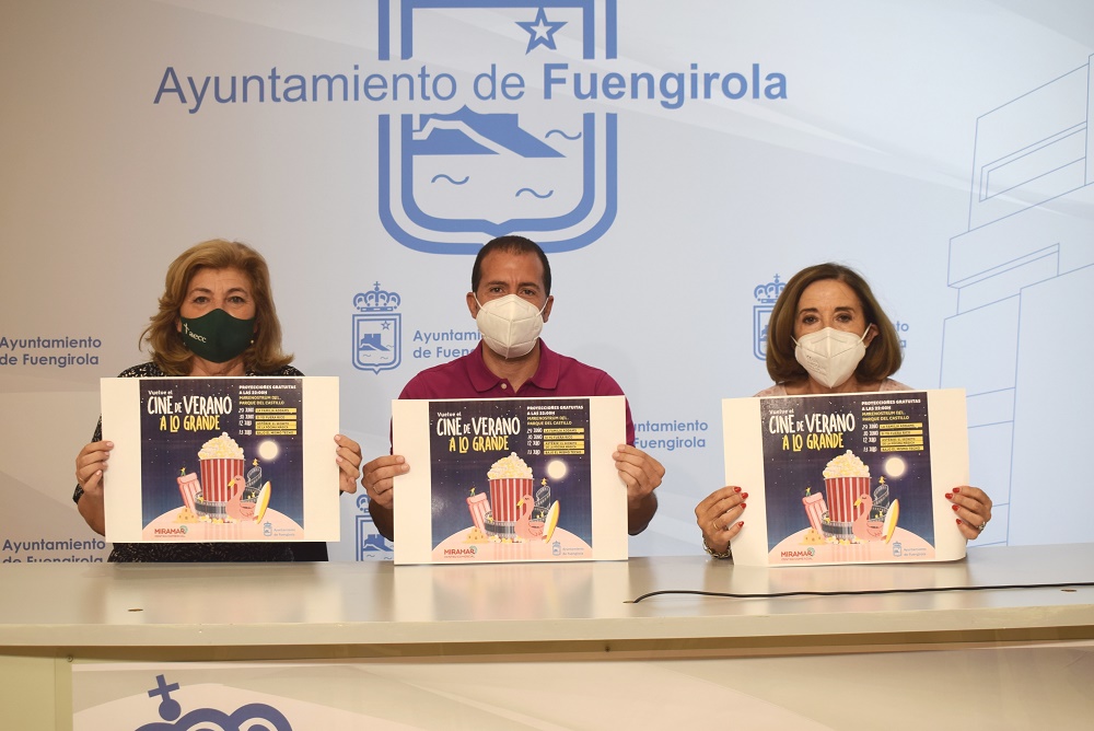El Ayuntamiento de Fuengirola ha cedido la gestión de las barras del Cine de Verano a las asociaciones benéficas AECC y AFA para que puedan recaudar fondos para sus causas. El concejal de Playas, Javier Hidalgo, ha comparecido esta mañana en rueda de prensa junto a la vicepresidenta de la Asociación Española Contra el Cáncer (AECC), Paloma Gómez, y la presidenta de la Asociación de Familiares de Enfermos de Alzheimer (AFA), Paqui Lebrón, para informar de la nueva edición de este evento familiar, que arrancará mañana martes, día 29 de junio, en la Playa del Castillo, concretamente en el recinto del festival Marenostrum. La recaudación íntegra se destinará al servicio de ayuda a enfermos y familiares que ambas entidades prestan en la ciudad.
