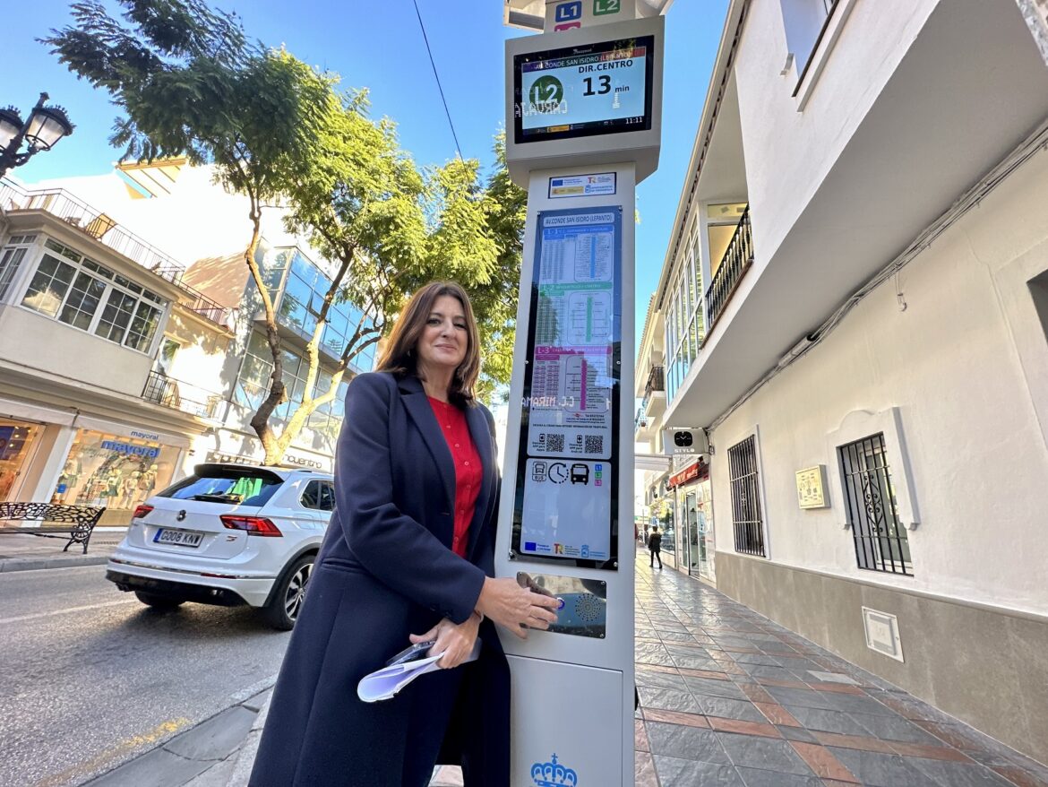 El Ayuntamiento de Fuengirola ha mejorado la atención a los usuarios del servicio de transporte urbano con la instalación de nueva señalética digital e inclusiva en las paradas de autobús. Así lo ha dado a conocer hoy la concejala de Innovación y Movilidad, Isabel González, quien ha señalado que, en total, se han colocado 62 postes informativos: 30 con información estática y 32 digitales, que ofrecen información en tiempo real de los minutos restantes para la llegada del bus. Se trata de una iniciativa incluida en el Plan de Movilidad Urbana Sostenible, cofinanciado con fondos europeos.