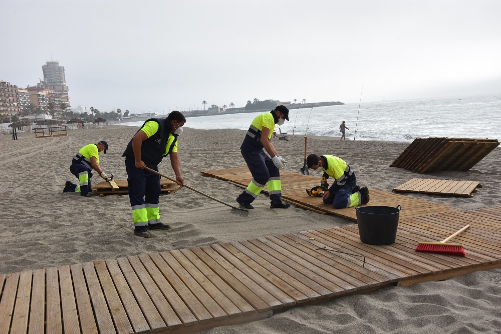 “Desde hace dos semanas estamos trabajando en mejorar los accesos de las diferentes pérgolas de entrada a la playa, en las que se están alargando los pasillos sobre la arena para mayor comodidad y accesibilidad de los usuarios”, ha explicado Hidalgo, señalando que se trata de unos trabajos que “normalmente se hacen durante el mes de mayo y que no se puede adelantar en el tiempo, ya que en cualquier momento podemos recibir un temporal que arrastraría estas pasarelas sobre la arena”.