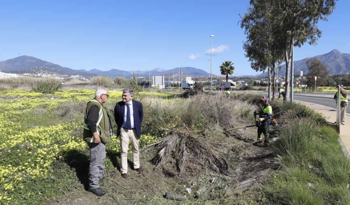 El Ayuntamiento está impulsando diversas actuaciones en la travesía urbana de la carretera de Ronda, en San Pedro Alcántara, con el objetivo de elevar la seguridad vial de la zona. El teniente de alcalde sampedreño, Javier García, ha visitado hoy los trabajos de desbroce que se están acometiendo en este tramo, de 3 kilómetros, con el propósito de mejorar la visibilidad de los conductores y reducir la siniestralidad “en un punto con una gran densidad de tráfico”.