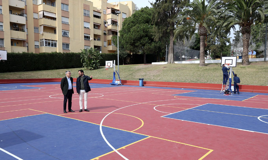 El Ayuntamiento ha mejorado la seguridad y la calidad de las pistas de baloncesto y de fútbol sala del Polideportivo El Arquillo para la práctica de estas disciplinas con las mayores garantías. El teniente de alcalde de San Pedro Alcántara, Javier García, ha señalado que esta actuación, que ha supuesto una inversión de 48.000 euros, “da respuesta a las peticiones de los clubes y de los usuarios que utilizan estas instalaciones”. El edil, que ha visitado el equipamiento junto al concejal del ramo, Lisandro Vieytes, ha concretado con respecto a la pista de baloncesto que el club de San Pedro que practica esta modalidad “nos solicitó, después de una intervención que efectuamos en el año 2019, que realizáramos este nuevo trabajo para eliminar el deslizamiento que habían detectado y evitar que se resbalasen los jugadores”.